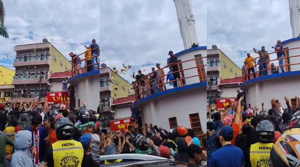 Nas imagens postadas em redes sociais, é possível ver que moradores da cidade se reúnem em volta de uma praça de Coari. Há tumulto entre as pessoas tentando pegar o dinheiro jogado pelo candidato.