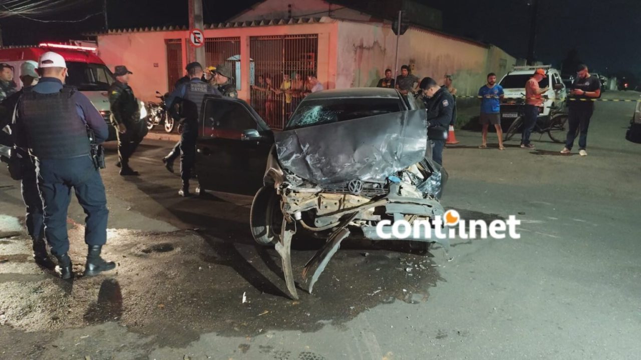 Viatura da Polícia Militar e veículo Gol ficaram destruídos após colisão em cruzamento no bairro Solar, em Rio Branco/Foto: ContilNet