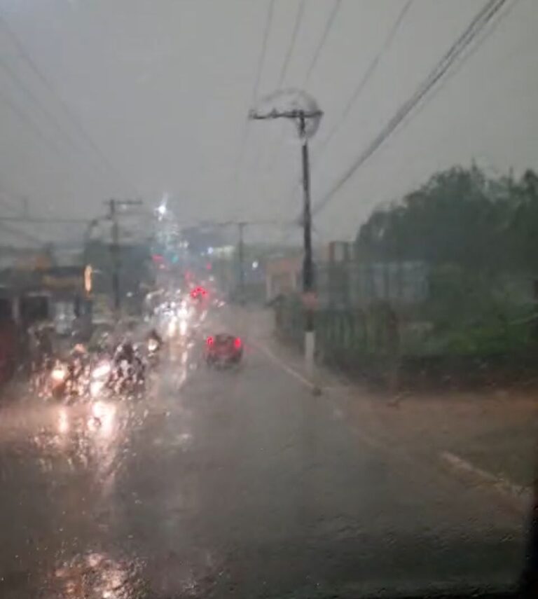 Segundo registros nas redes sociais, antes mesmo do meio dia, os céus ficaram escuros, com uma precipitação intensa de chuvas e raios, que duram até o presente momento.