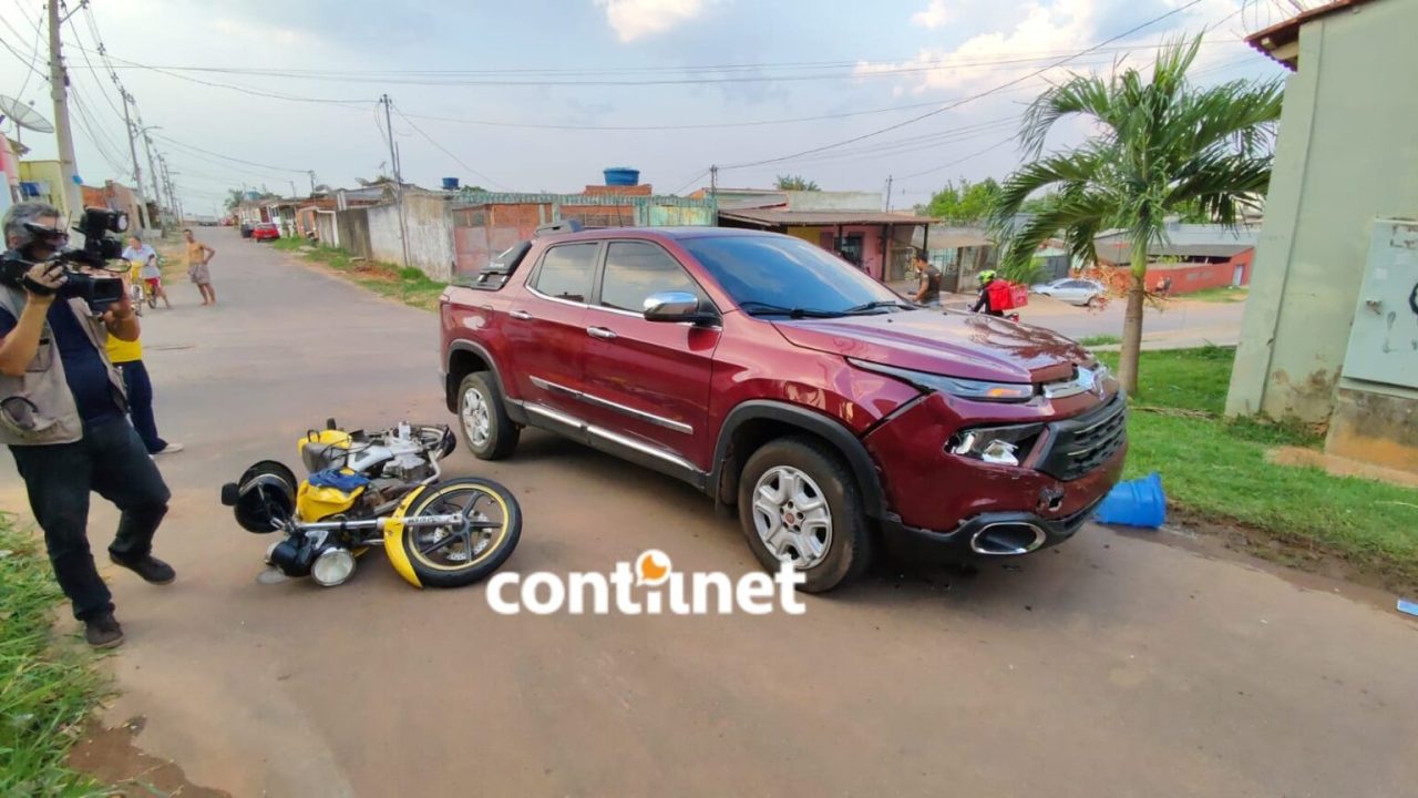 O entregador Jean Claudecir Menezes de Oliveira, 50 anos, sofreu uma fratura exposta após uma colisão envolvendo uma caminhonete Fiat Toro e uma motocicleta, no final da tarde desta quarta-feira (2), no cruzamento das ruas São José e 7 de Setembro, no bairro Esperança, em Rio Branco.