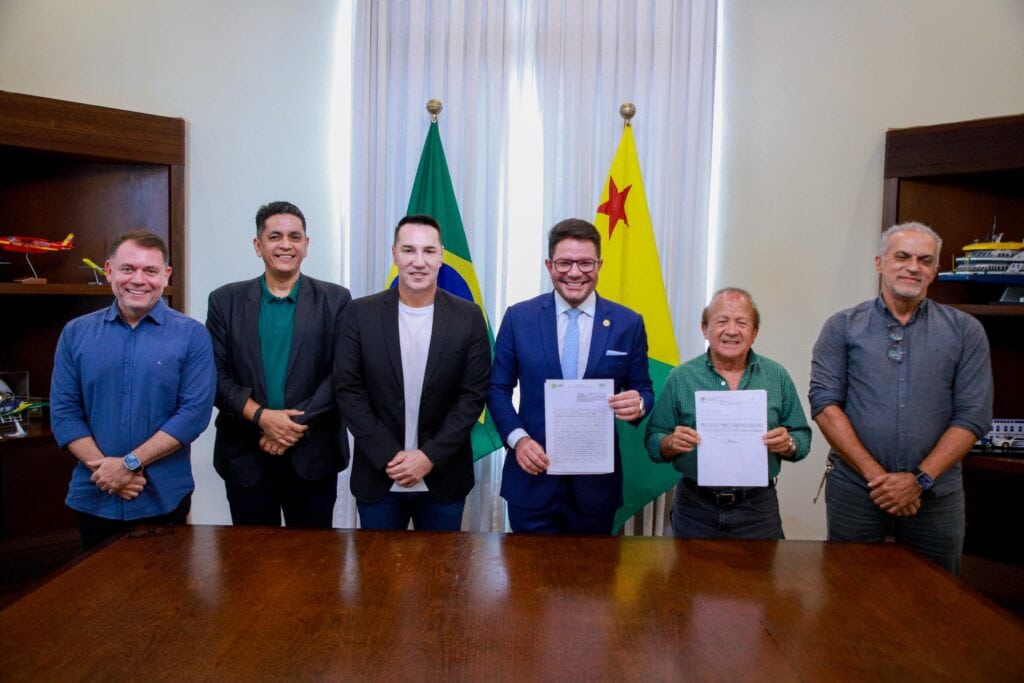 O governador Gladson Cameli formalizou um convênio na manhã desta sexta-feira (11), que destina R$ 1,5 milhão à Federação de Futebol do Acre (FFAC). A cerimônia de assinatura contou com a presença de várias autoridades, incluindo o secretário Estadual do Esporte, Ney Amorim, e o presidente da FFAC, Antônio Aquino Lopes.