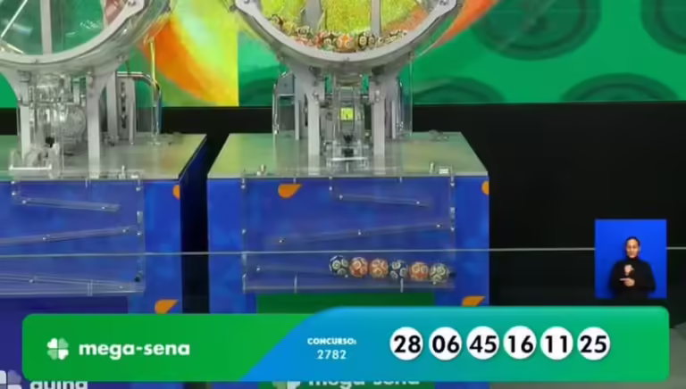 A Caixa Econômica Federal realizou nesta quinta-feira o sorteio do concurso 2.782 da Mega-Sena com um prêmio de R$ 44.339.44,90. As dezenas sorteadas foram: 28, 06, 45, 16, 11 e 25. Nenhuma aposta acertou as seis dezenas, deixando o prêmio acumulado em R$ 50 milhões para o próximo sorteio, que ocorre neste sábado. Sem ganhadores do prêmio principal, 62 apostas ficaram com R$ 50.508,99 da quina, enquanto que 5.587 apostas levaram R$ 800,72 com a quadra.