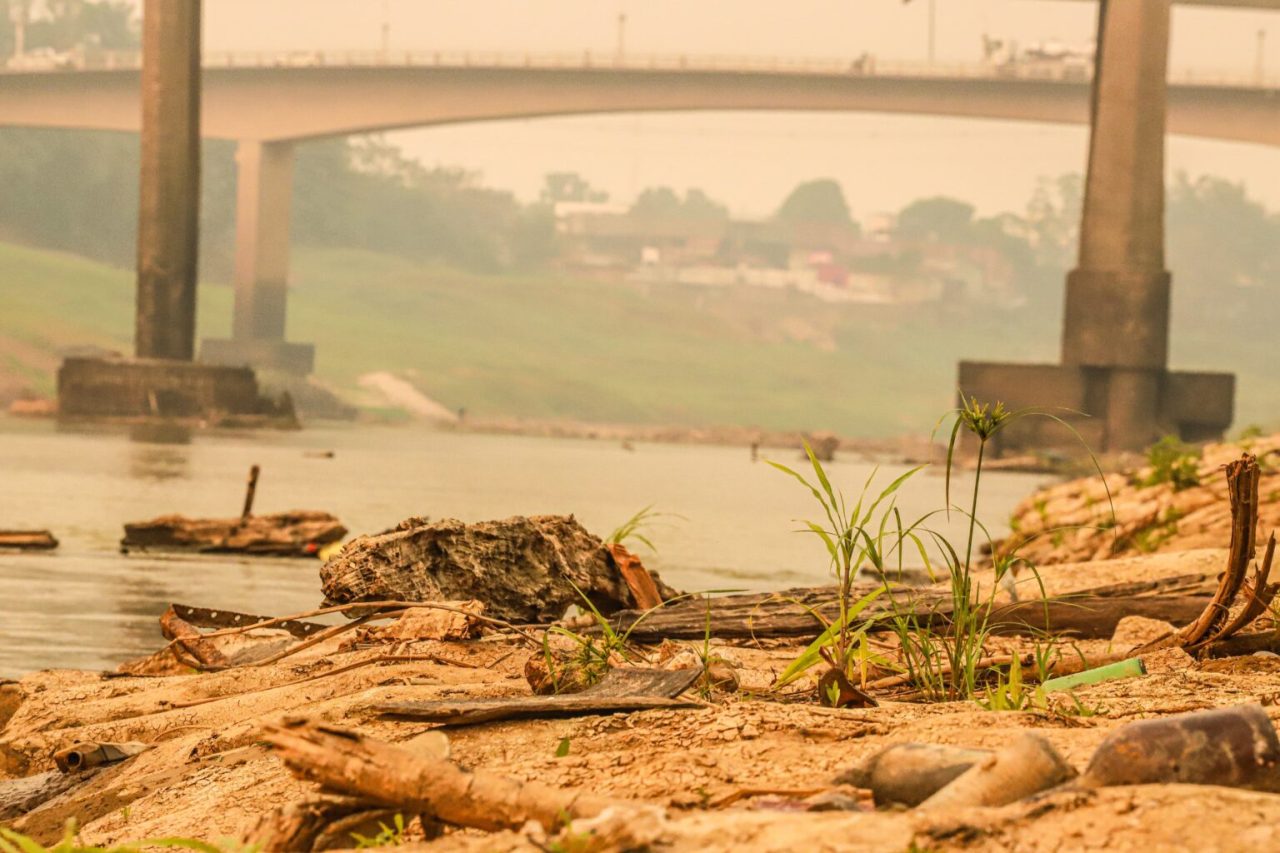 Vista das duas pontes no centro de Rio Branco, e do Rio Acre, em período crítico de fumaça e seca/Foto: Juan Diaz