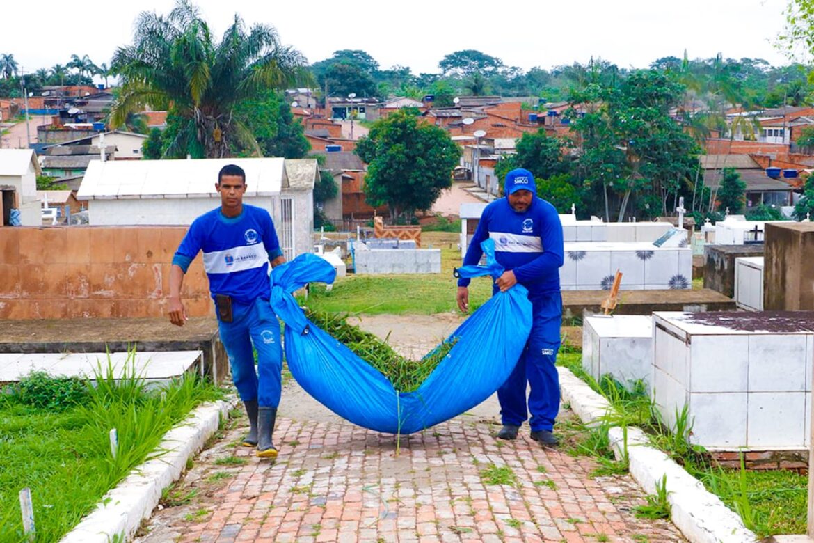 Garis em trabalho de limpeza no cemitério São João Batista, o maior da cidade/Foto: Assessoria/Prefeitura de Rio Branco