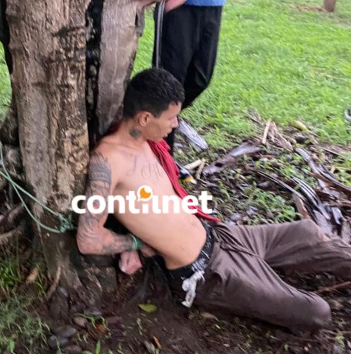 Moradores amarram assaltante S.J.A.P. após encontrá-lo escondido na mata, próximo à fronteira com a Bolívia/Foto: ContilNet