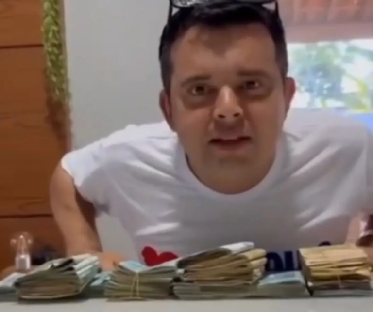 Ubirajara Rayol Soares, prefeito de Graça Aranha, exibe bolos de dinheiro em vídeo polêmico, gerando indignação entre os moradores após sua reeleição/Foto: Reprodução