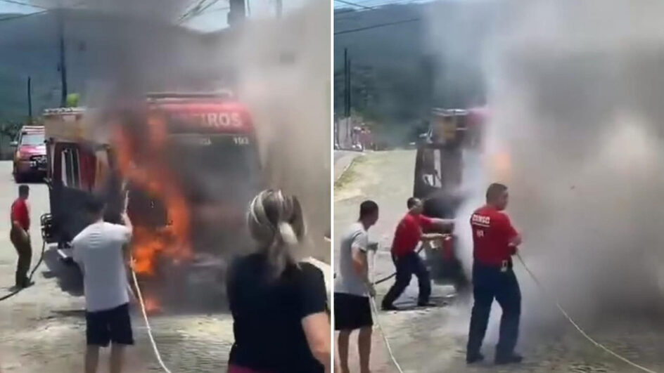 Era por volta das 11h30min quando os bombeiros perceberam o princípio de incêndio no veículo usado durante as ocorrências. Segundo os profissionais, o fogo começou no compartimento do motor e atingiu uma parte do painel interno do caminhão.