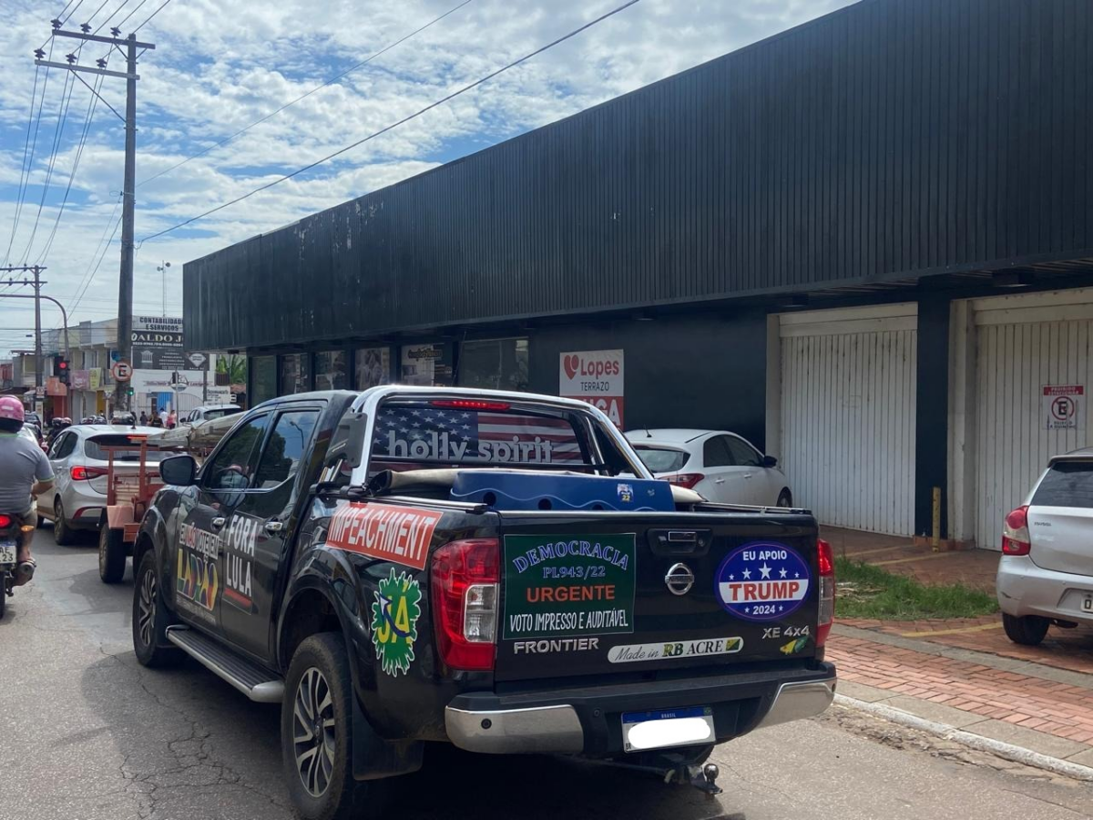 Apesar das eleições presidenciais nos Estados Unidos terem chegado ao fim, o tema ainda continua gerando atenção até mesmo no Acre. Em Rio Branco, a capital do estado, é possível avistar um veículo circulando com diversos adesivos de apoio ao presidente reeleito Donald Trump.