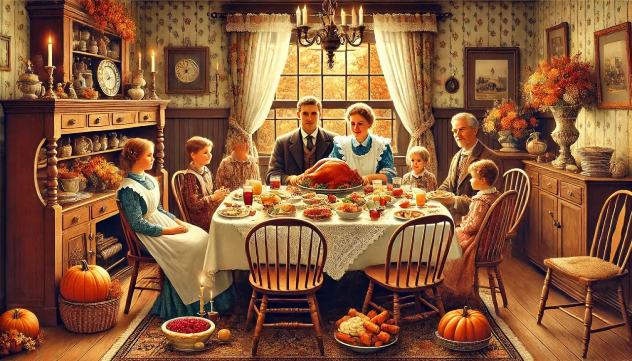 No outono de 1621, após uma colheita bem-sucedida, o governador da colônia, William Bradford, organizou uma celebração para agradecer a Deus por estarem vivos e pelas bênçãos daquele ano. Os colonos se reuniram com cerca de 90 indígenas para uma refeição que durou três dias, compartilhando comida, orações e momentos de comunhão.