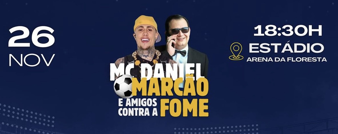 O Acre será palco de um evento beneficente inédito nesta terça-feira (26), às 19h, na Arena da Floresta, em Rio Branco. A primeira edição do “MC Daniel, Marcão e Amigos Contra a Fome” reunirá artistas, influenciadores e ex-atletas de renome nacional, com o objetivo de arrecadar alimentos para famílias em situação de vulnerabilidade.