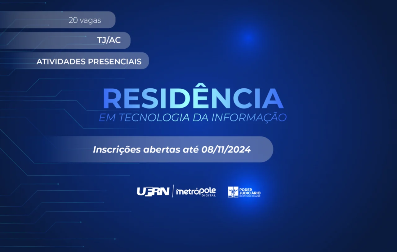 Já foi tornado público o Edital nº 001/2024, que disciplina processo seletivo simplificado para formação de nova turma do programa de residência em Tecnologia da Informação (TI) do Tribunal de Justiça do Estado do Acre (TJAC). A ação é desenvolvida em parceria com o Instituto Metrópole Digital (IMD), unidade acadêmica especializada da Universidade Federal do Rio Grande do Norte (UFRN).