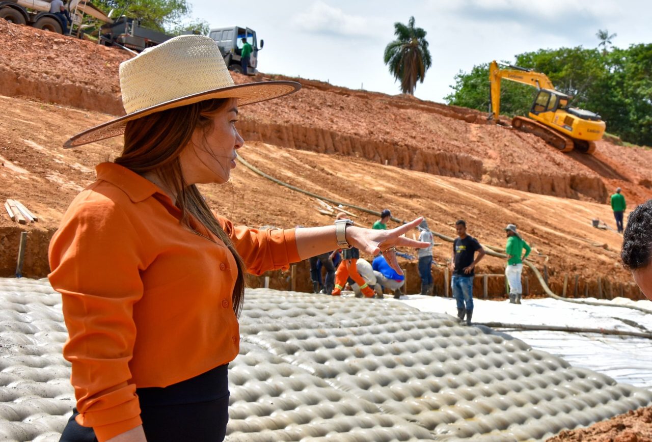 Prefeita Fernanda Hassem vistoria serviços avançados da Orla do Rio Acre em Brasiléia. Foto: Reprodução