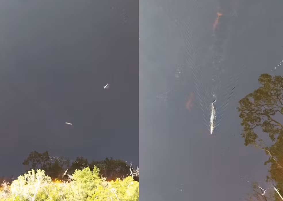 O registro, divulgado na última quinta-feira (21/11), mostra dois botos-cor-de-rosa acompanhando um enorme jacaré-açu, que segue seu trajeto. A cena foi capturada pelo biomédico Jhonatha Barros e compartilhada nas redes sociais. As imagens foram feitas por um drone.