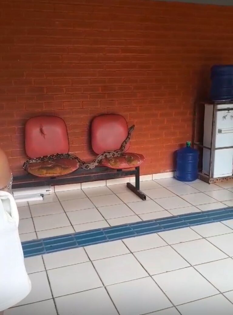 Uma jiboia chamou a atenção dos alunos da Universidade Federal do Acre (UFAC) ao ser vista relaxando em cadeiras em um dos blocos estudantis nesta semana.