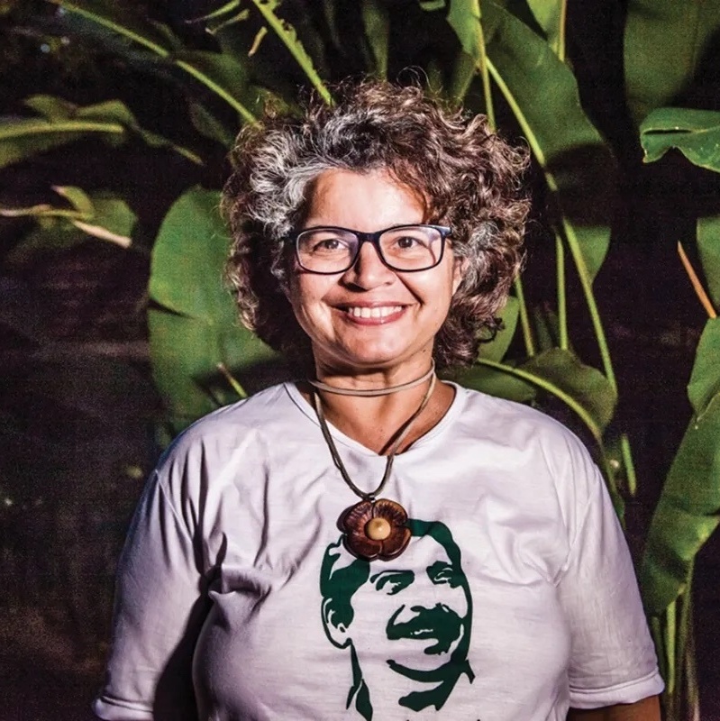 Este ano, o meu pai estaria completando 80 anos de vida, se estivesse vivo. E a gente vai começar agora dia 15 a Semana Chico Mendes, que traz esse tema, Chico 80 anos a luta continua, então é bem simbólico a gente falar sobre isso porque a gente não tem descanso, né? Mas enquanto uma parte da população estiver mobilizada e com esse compromisso, de lutar por igualdade e justiça social, a gente vai continuar avançando no sentido de transformação dessa sociedade que o Chico sonhava, dessa revolução que ele sonhava, transformando o planeta no mundo socialista, num mundo de paz assim. Nem só de luta a gente vive. A gente tem que Celebrar que Chico, por mais que a gente saiba que o corpo dele descansa, ele deixou tantas sementes que hoje a gente se inspira nele para fazer coisas para pensar coisas. A luta continua e a gente continua também enfrentando, com os instrumentos, a gente também vai inventando.