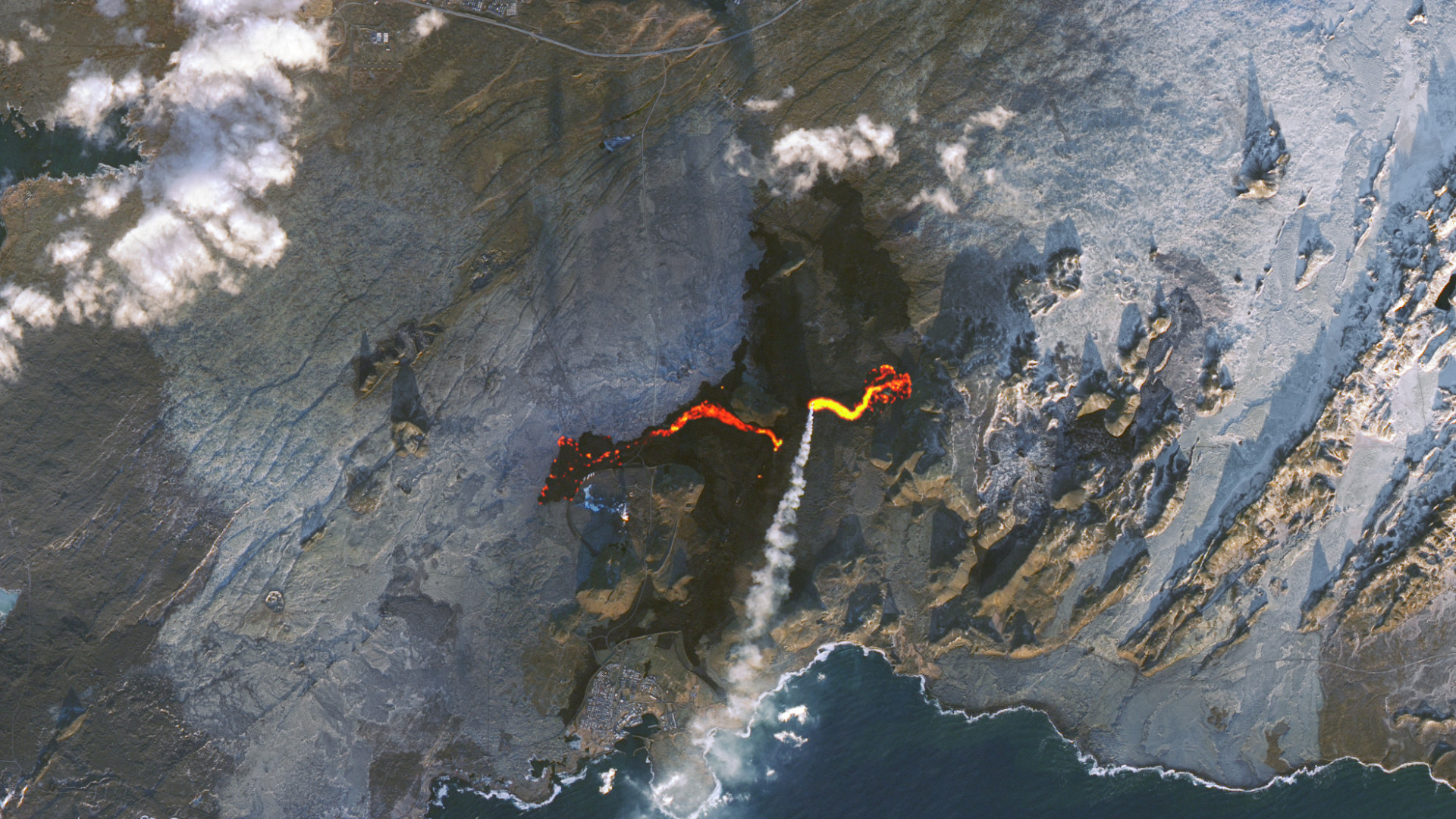 Imagens de satélite mostram erupção na Islândia, perto da Lagoa Azul
