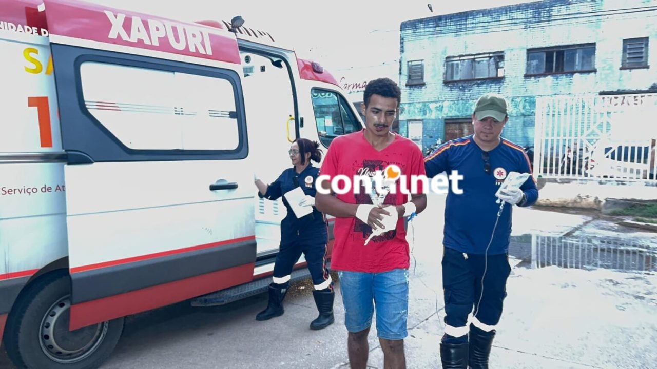 Familiares de Wengreti da Silva Santiago o acompanham durante o traslado para o pronto-socorro de Rio Branco, onde será avaliado por especialistas/Foto: ContilNet