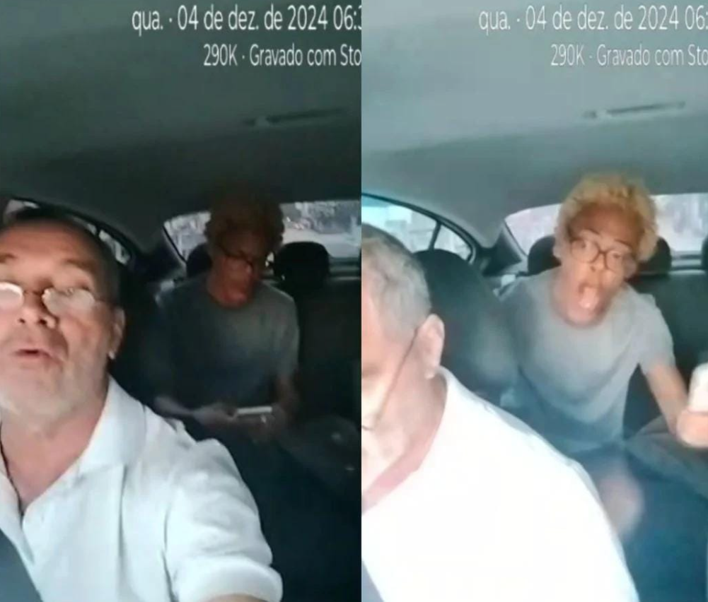 O incidente ocorreu após o motorista se recusar a alterar o percurso da viagem sem que o passageiro solicitasse a parada. O passageiro, identificado como Carlos Vera Cruz, visivelmente irritado, começou a ter um “surto” dentro do veículo.
