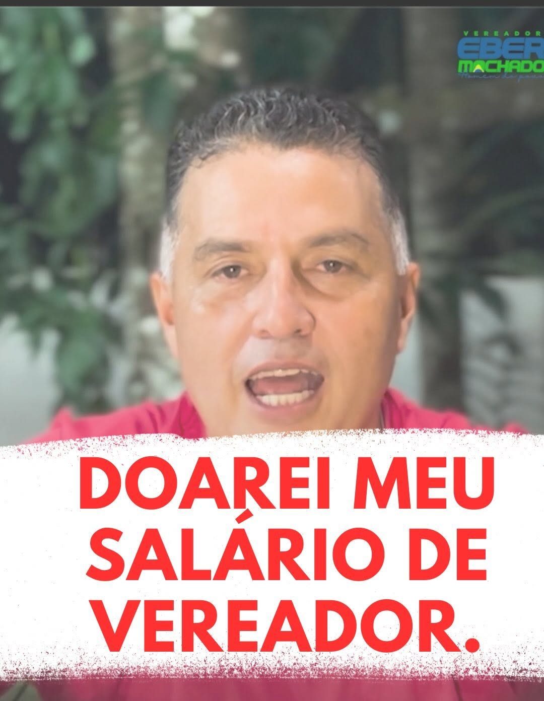 O vereador Eber Machado anunciou, em seu perfil no instagram, que irá realizar a doação de 50% de seu salário, como resposta aos aumentos salariais dos secretários e prefeito.