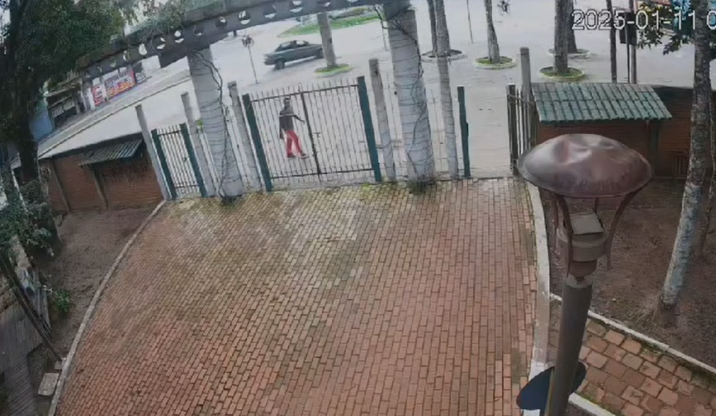 Momento capturado pelas câmeras de segurança do Horto Florestal, mostrando o suspeito chegando ao parque, por volta das 5h35 da manhã, antes de cometer a tentativa de estupro/Foto: Reprodução