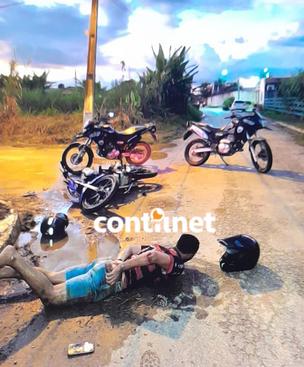Ao tentar fazer uma curva em alta velocidade, o motociclista perdeu o controle da moto e caiu no asfalto, sofrendo escoriações no rosto, pernas e braços. Após a queda, foi interceptado e algemado para evitar nova tentativa de fuga.
