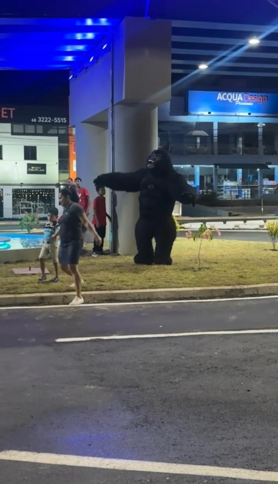 “O acreano, ele tem que ser estudado, quase 10 horas da noite neste dia primeiro de janeiro de 2025 e do nada surge um gorila no elevado Beth Bocalom e está se tornando atração para todo mundo que passa, este é o Acre, feliz 2025”, brinca o homem.