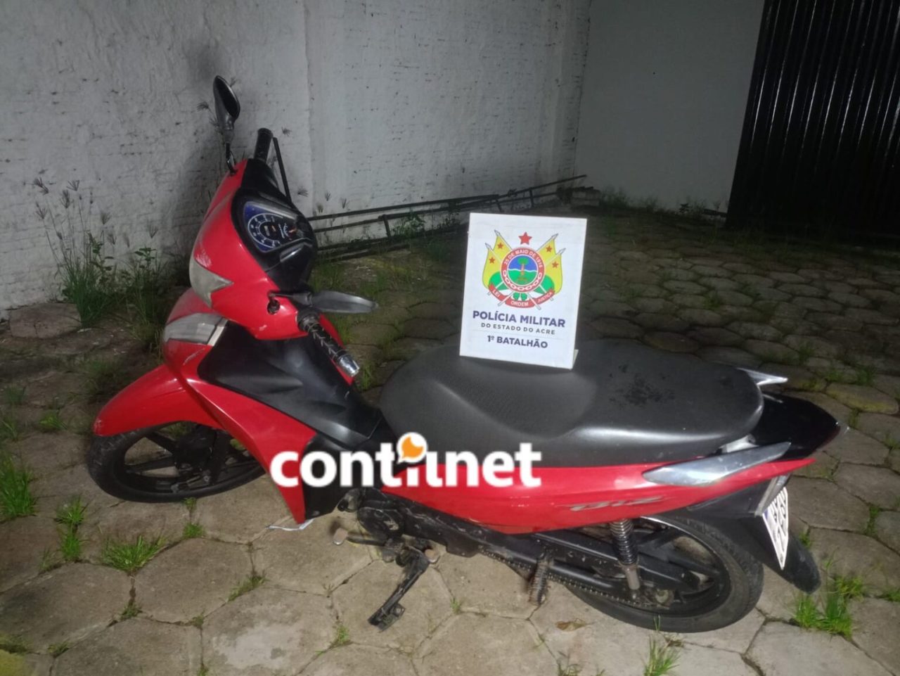 Na noite deste domingo (5), um homem foi preso e uma motocicleta modelo Biz 125, de cor vermelha, foi recuperada por uma guarnição do 1° Batalhão da Polícia Militar no bairro Cadeia Velha, em Rio Branco. A moto havia sido furtada no dia 19 de dezembro, na avenida Amadeo Barbosa.