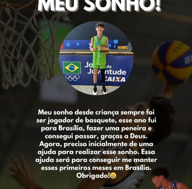 Agora, com a vaga garantida, ele enfrenta a dificuldade de se manter na capital para dar continuidade ao seu sonho. Em um gesto de humildade, o jogador está pedindo ajuda para os primeiros meses em Brasília, enquanto se adapta à nova fase de sua vida.