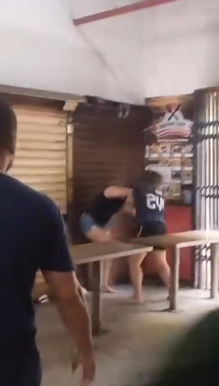 No vídeo é possível ver puxões de cabelo, tapas e socos trocados entre as duas mulheres. Mesmo com muitos curiosos no local, ninguém interviu no embate da dupla que se chocava contra algumas das lojas que se encontravam fechadas.