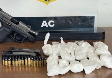 Os materiais ilícitos estavam ocultos dentro de uma caixa de som. Um homem foi detido em flagrante e levado à Delegacia de Manoel Urbano, onde foi preso e o caso está sendo tratado conforme os procedimentos legais.