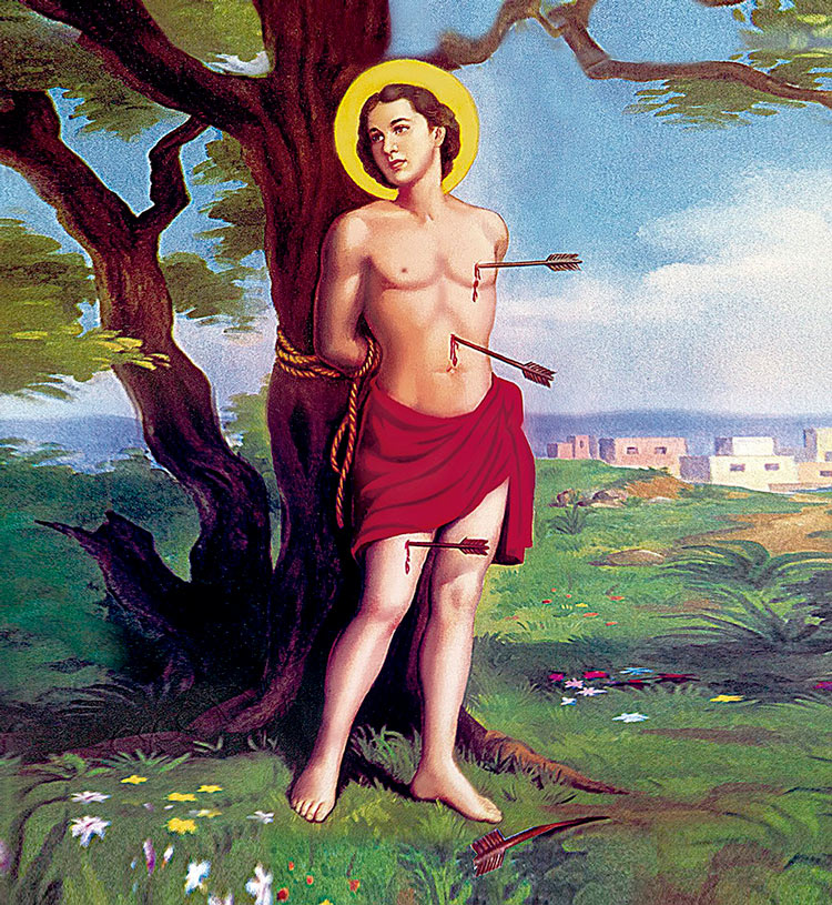 Antes de o cristianismo ser instituído como religião oficial de Roma pelo Imperador Constantino, em 312 d.C., São Sebastião foi acusado de traição ao exército imperial, do qual fazia parte. Sua execução foi brutal: açoitado e atingido por flechas até a morte, foi acusado de viver uma “vida dupla” por participar secretamente de reuniões de cristãos, que na época viviam na clandestinidade. Após sua morte, o corpo de Sebastião foi jogado nos esgotos de Roma, mas acabou resgatado por cristãos e sepultado em uma catacumba na cidade.