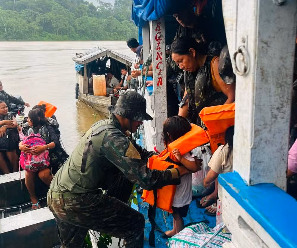 Indígenas são resgatados por militares após naufrágio no Rio Javari, no Amazonas/Foto: Divulgação/CMA