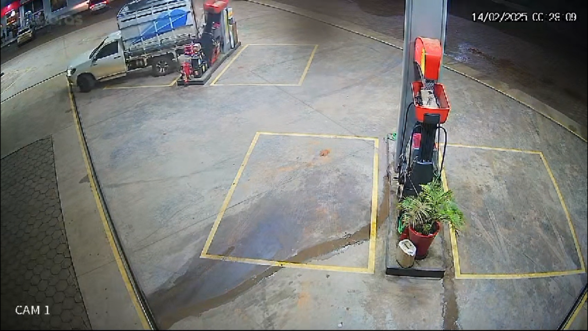 Nas imagens, é possível ver um caminhão dando ré até atingir uma das bombas de gasolina, que cai no chão. O motorista segue seu caminho, sem fiscalizar o resultado do impacto.