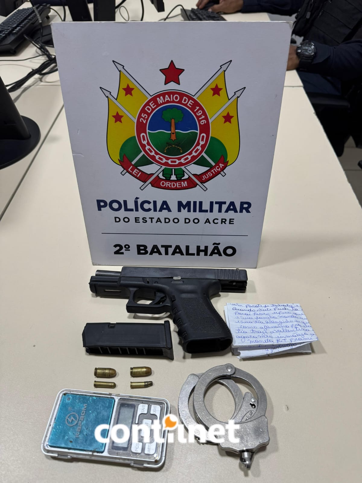 A prisão aconteceu em via pública na quadra 8 do Conjunto Habitacional Cidade do Povo, na região do Segundo Distrito de Rio Branco.