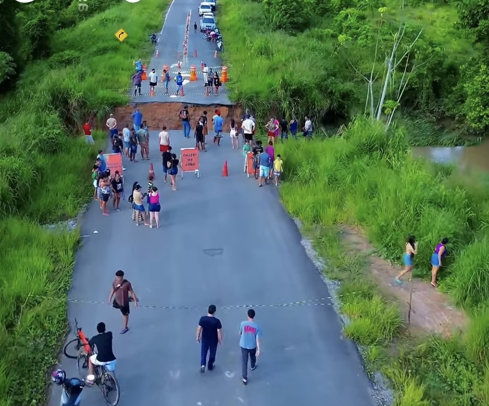 A interrupção da BR-364 aconteceu na região do bairro Corcovado, em Tarauacá, onde a forte correnteza danificou um bueiro, bloqueando o tráfego no local.