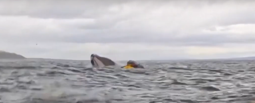 Uma baleia jubarte “engoliu” um homem que estava em um caiaque na costa do sul do Chile no sábado (8) e o cuspiu logo na sequência.