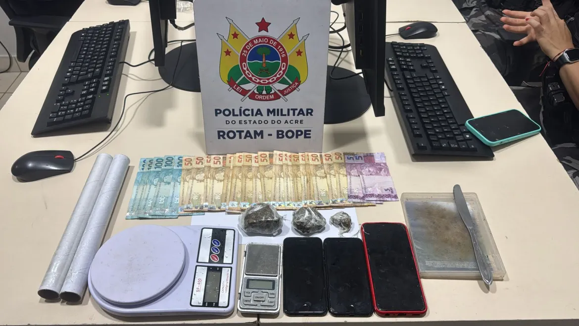 A equipe cercou o imóvel, entrou no local e abordou os suspeitos. Com eles, foram apreendidos 80 g de maconha, duas balanças de precisão, material para embalar a droga e uma quantia de R$ 1.660, possivelmente oriunda do tráfico.