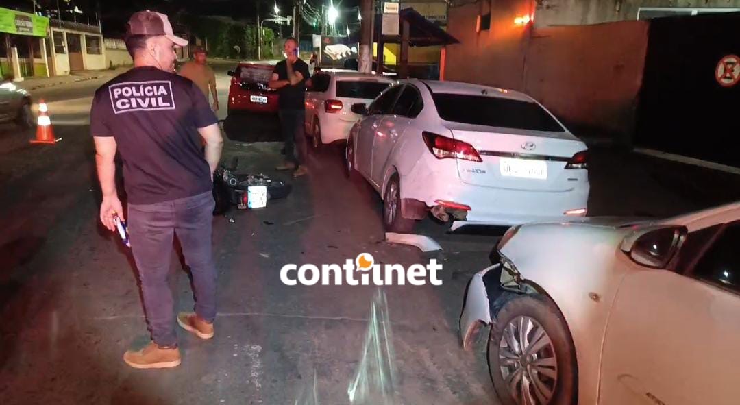 O motociclista, identificado apenas como João, ficou ferido após perder o controle da moto e colidir com três carros na noite de terça-feira (11), na Estrada do Aviário, em Rio Branco.