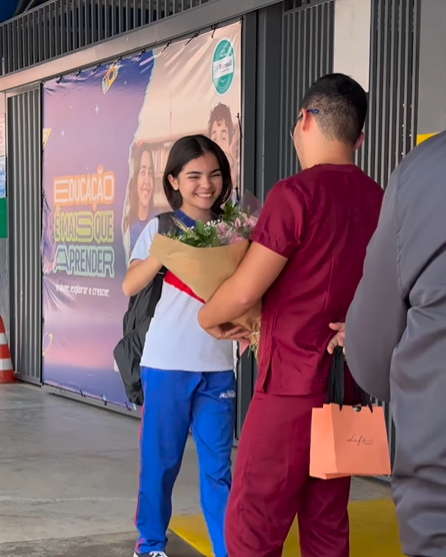 O pai da jovem Maria Eduarda, Marcelo Mota, emocionou seguidores ao postar um vídeo mostrando a surpresa que preparou para a filha ao esperá-la na saída da escola nesta terça-feira (18). Com um buquê de flores em mãos, Marcelo a recebeu com um sorriso cheio de amor, proporcionando um momento especial de troca de presentes, sorrisos e olhares cúmplices.