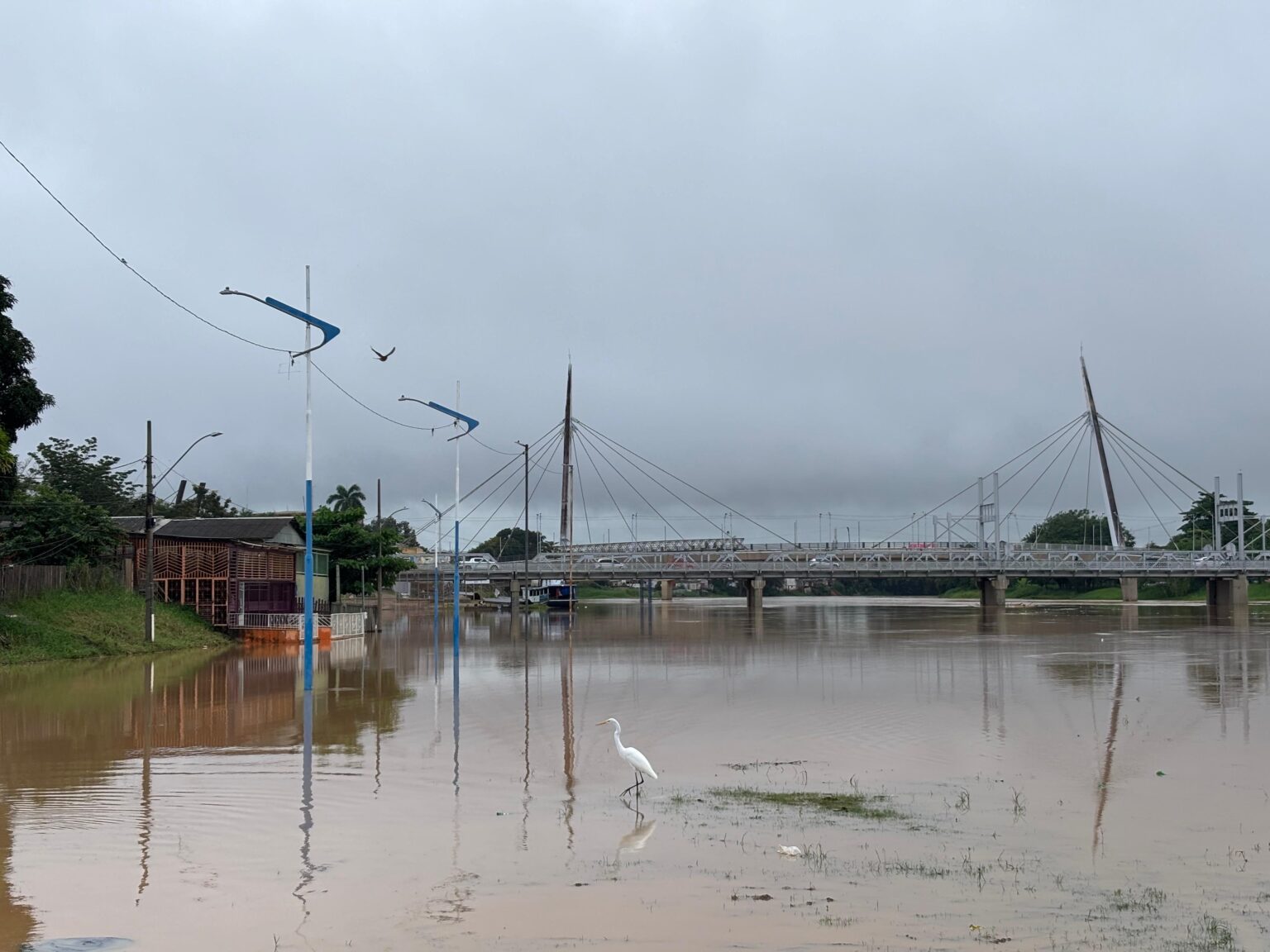 Após ultrapassar a marca de transbordamento, o nível do Rio Acre começou a apresentar uma queda em Rio Branco na tarde de terça-feira (11). Por volta das 9h, a medição foi de 14,35 metros, indicando estabilidade. Às 12h, o nível caiu para 14,33 metros e, às 15h, registrou 14,31 metros.