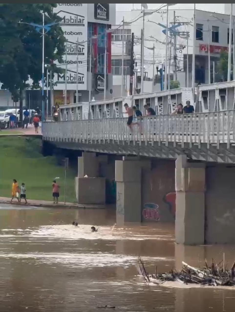 Com a cheia do Rio Acre a população começa frequentar as margens do manancial, porém, algumas situações de perigo são presenciadas. Nesta segunda-feira (10), adolescentes foram flagrados pulando da ponte Juscelino Kubitscheck, no Centro de Rio Branco, também conhecida como Ponte Metálica, para tomar banho no rio.