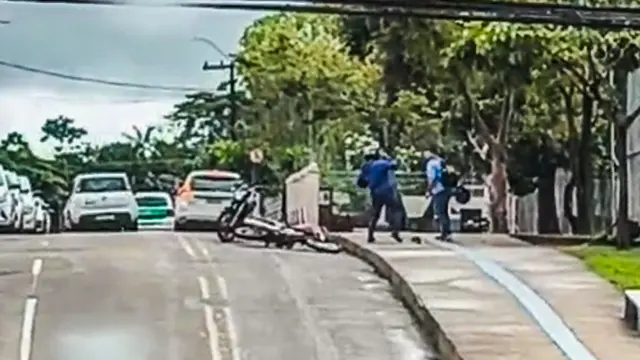 Imagens capturadas por um cinegrafista amador mostram uma moto no chão na rua João XXIII, em frente à Praça do Juventus, e os dois homens que seriam ocupantes das motocicletas discutindo e se agredindo.