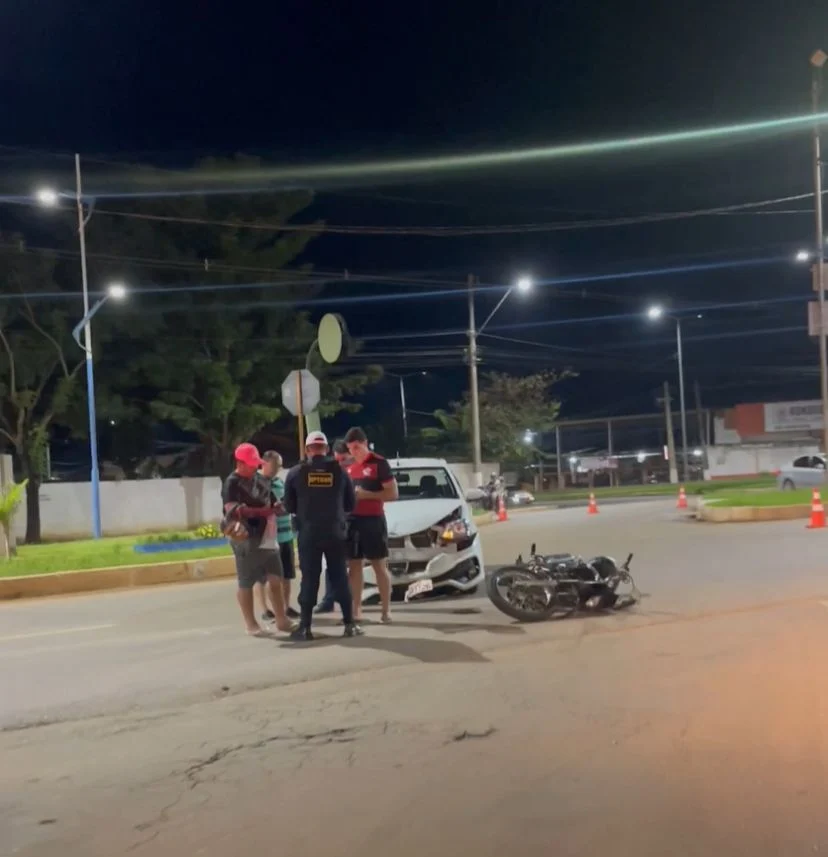 Um acidente envolvendo uma motocicleta e um carro foi registrado na noite desta quarta-feira (23), na rotatória da avenida Chico Mendes, em Rio Branco. Segundo informações preliminares, a colisão em um dos trechos mais movimentados da via.