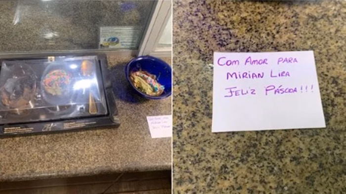 De acordo com depoimento do pai da criança, o ovo chegou à casa da família entregue por um motoboy, como um presente na noite dessa quarta-feira (16/4). O doce veio com um bilhete escrito “Com amor, para Miriam Lira. Feliz Páscoa”. Não se sabe quem enviou o ovo. As informações são do portal G1.