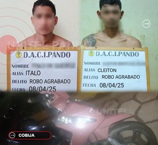 Entre as ações criminosas atribuídas aos suspeitos está o roubo de uma motocicleta no bairro Las Palmas, nas proximidades da ponte Internacional e da Universidade Amazônica de Pando (UAP). Segundo a polícia, a vítima foi ameaçada com uma faca antes de ter o veículo levado.