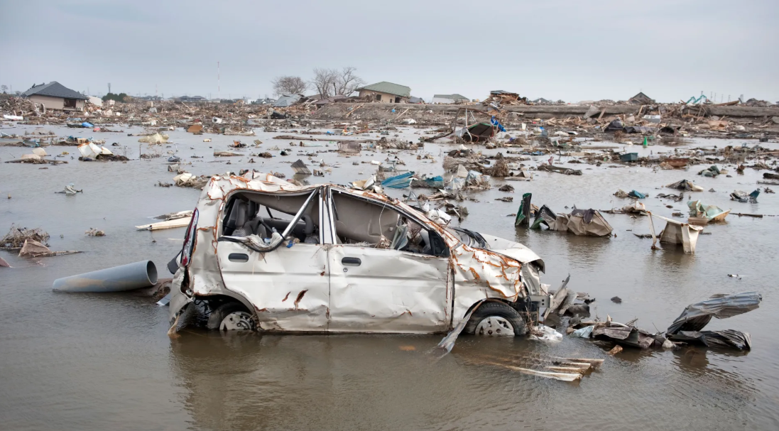Danos causados após tsunami, terremoto e acidente nuclear em Sendai, no Japão, em 2011. • Foto: Mark Edward Harris/Getty Images