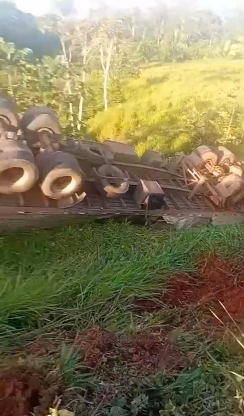 Imagens gravadas por pessoas que passaram pela estrada logo após o acidente mostram a cena do caminhão virado e destruído/ Foto: Reprodução