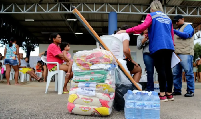 A prefeitura de Rio Branco realizou a entrega de 1700 kits para as famílias que estiveram desabrigadas na capital acreana em razão da enchente do Rio Acre, que fez com que 547 pessoas fossem levadas para o Parque de Exposições.