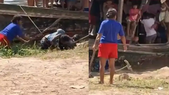 Um vídeo que vem circulando em grupos de WhatsApp e redes sociais tem gerado grande repercussão ao mostrar dois indígenas envolvidos em uma briga à beira de um rio. O que mais chamou a atenção, no entanto, foi a maneira inusitada como o confronto foi encerrado: uma mulher da tribo surgiu e, sem hesitar, separou os brigões utilizando um pedaço de pau.