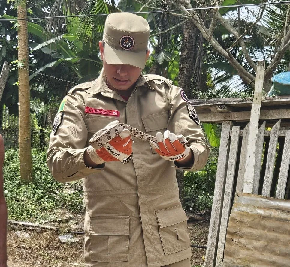 Integrantes do Corpo de Bombeiros de Sena Madureira foram acionados na manhã de ontem para atender uma ocorrência envolvendo animais silvestres no bairro Bom Sucesso. Em determinado momento, o morador constatou a presença de uma cobra jiboia em uma malhadeira que estava no terreiro.